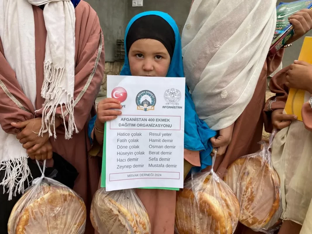Gündelik hayatımızın en temel beslenme kaynağı olan ekmek, Afganistan’da yaşanan yoksulluk ve iç karışıklık nedeni ile gündelik ekmek ihtiyacın tedarik edemeyen kardeşlerimize sizlerin destekleriyle ekmek ikram ediyoruz.